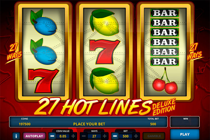 Добро пожаловать в новый видео-слот Hot 27 слот, разработанный Amatic Software. Это не только вернет вас к истокам азартных игр, но и даст возможность быстро заработать деньги без лишних ходов! Классический фруктовый видео-слот с ярким фоном и контрастной символикой. Скачивать игру на персональный компьютер не нужно. Игроки могут легко получить бесплатный доступ к игре на сайте нашего онлайн-казино, а также нет необходимости проходить регистрацию, если вы собираетесь играть в бесплатную демо-версию.